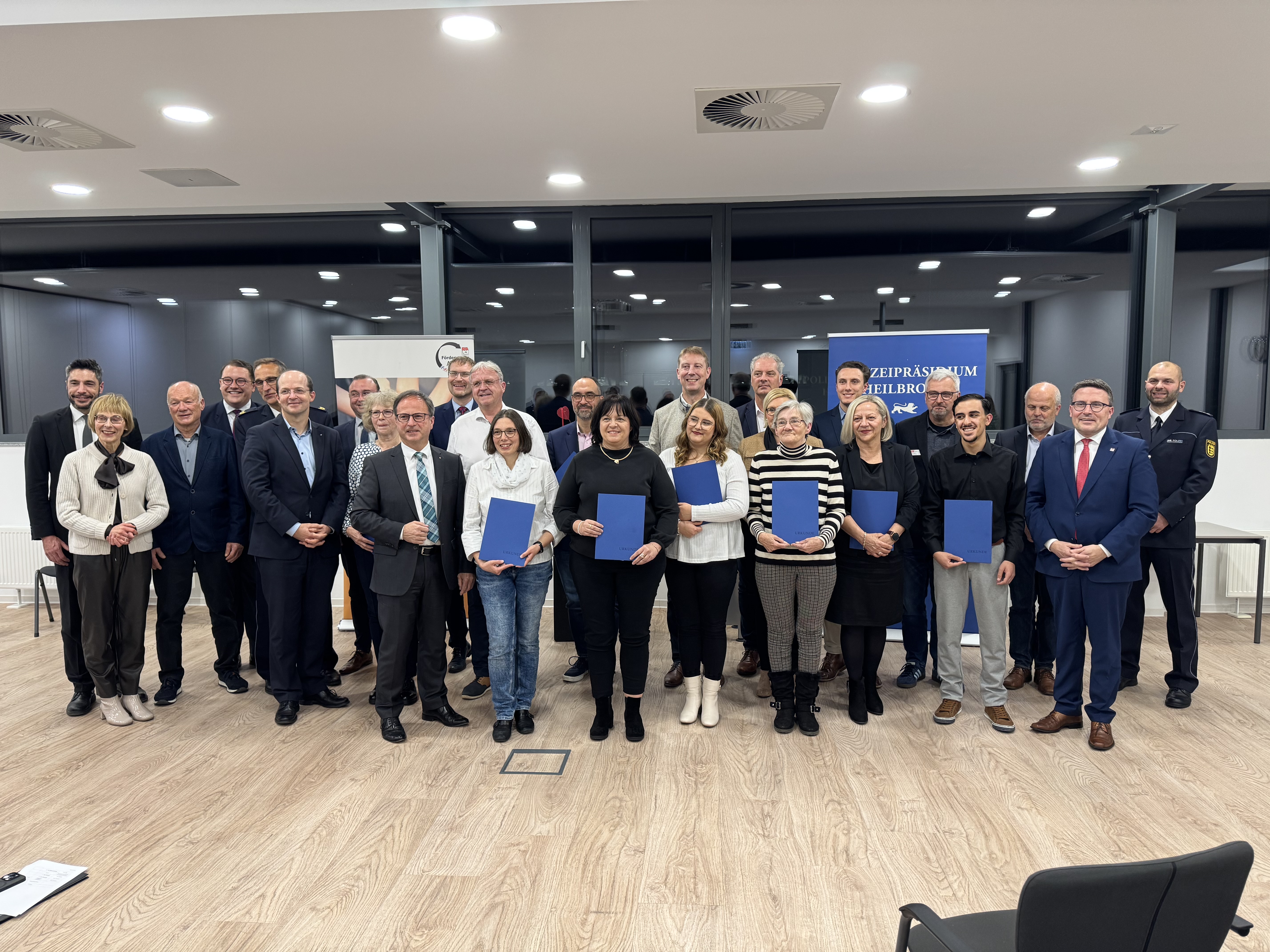 Der Förderverein Aktionskreis Sucht- und Gewaltprävention, Sicherheit und Gesundheitsförderung im Main-Tauber-Kreis e.V. (Förderverein AkS) hat am Dienstag, 4. November, im Landratsamt in Tauberbischofsheim den Zivilcouragepreis für den Main-Tauber-Kreis verliehen. Gewürdigt wurden insgesamt 13 Menschen, die in verschiedenen Situationen in herausragender Weise ihre Zivilcourage bewiesen haben. In diesem Jahr wurden die Preise von der Volksbank Main-Tauber-Neckar-Odenwald zur Verfügung gestellt, die sich hierbei jährlich mit der Sparkasse Tauberfranken abwechselt. Auch die Sportjugend ist seit vielen Jahren in diesem Gremium vertreten!