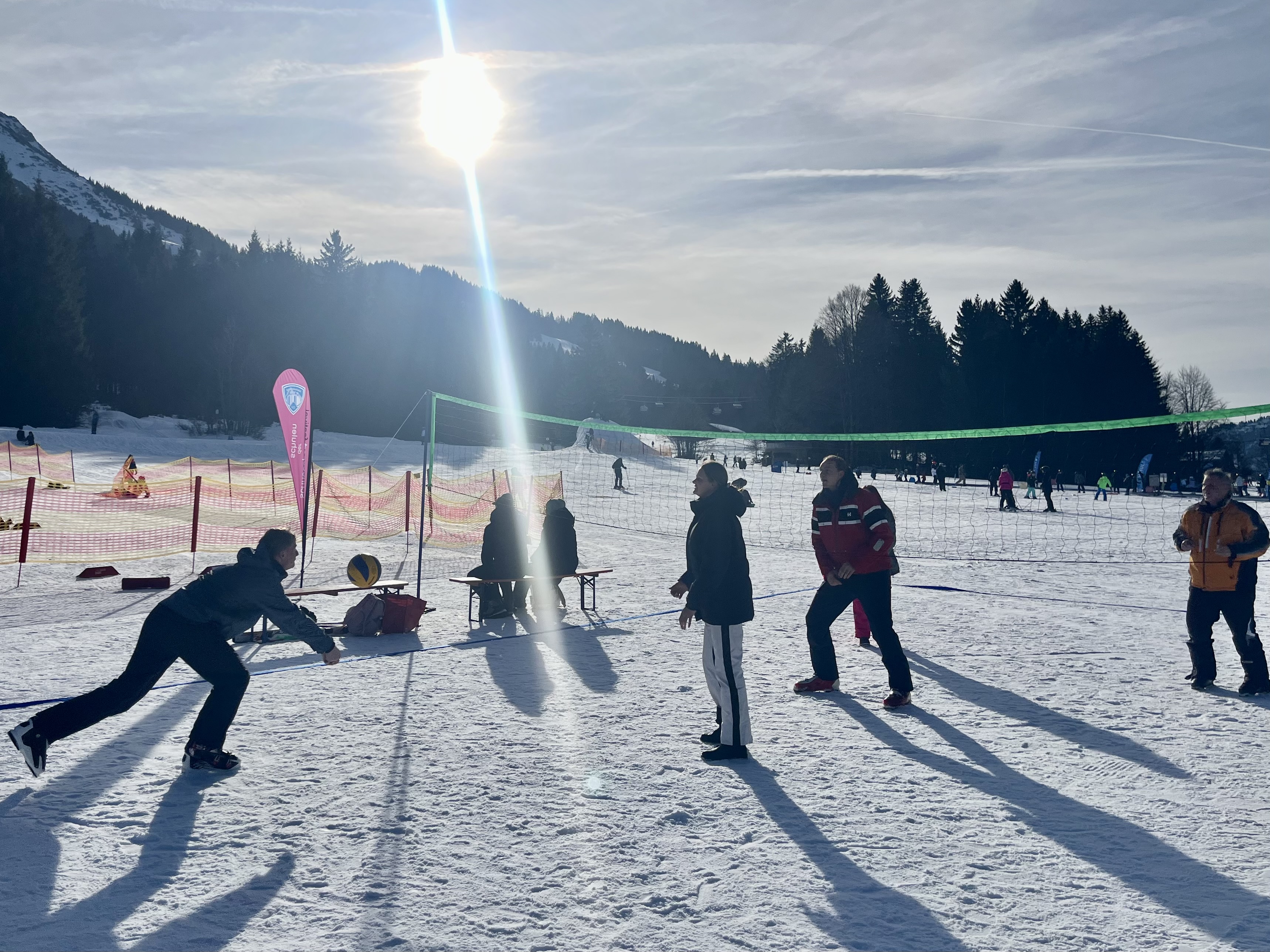 Nach der Ankunft im Oberjoch zeigte sich die winterliche Berglandschaft von ihrer schönsten Seite. Die Schülerinnen und Schüler konnten an einer Vielzahl von Schneesportaktivitäten teilnehmen: Skifahren, Snowboarden, Rodeln, erste Versuche im Langlauf sowie verschiedene weitere Angebote vor Ort – unter anderem Schneevolleyball, das bei vielen für besondere Begeisterung sorgte. Damit wurde die gesamte Bandbreite des Schneesports angeboten, sinnvoll ergänzt durch pädagogische Lehrgangsinhalte.