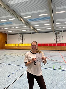 Am Ende der Woche absolvierte Rebecca erfolgreich ihre Prüfungslehrprobe sowie ihre schriftliche Prüfung und hat nun ihre C-Lizenz als Übungsleiterin im Breitensport offiziell in der Tasche. Damit ist sie bestens darauf vorbereitet, Vereins- und Freizeitangebote zu planen, zu organisieren und durchzuführen sowie eigenständig Trainingseinheiten im Anfängerbereich zu leiten.